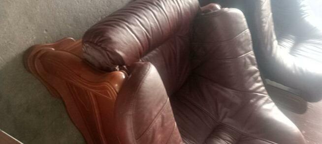Wygodna, skórzana sofa w kolorze beżowym wraz z fotelem, w dobrym stanie, nadaje się do dalszego użytkowania. Idealna ...